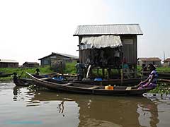 Ganvié is a lake village on stilts in Benin, Africa, in Lake Nokoué, near Cotonou. With a population of around 20,000 people, it is probably the largest lake village in Africa and is very popular with tourists.