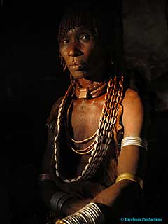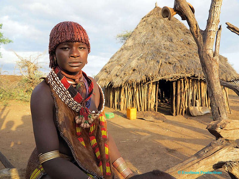 Les Hamars ( aussi appelé Hamers ) forment une tribu qui peuple le sud-ouest de l’Ethiopie. Ils vivent dans le woreda ( ou district ) Hamer Bena, une région fertile de la Vallée de l’Omo, un fleuve traversant la Zone Omo Debub de la Région des Nations, Nationalités et Peuples du Sud ( SNNPR ). Ils forment un peuple essentiellement pasteur, qui accorde par conséquent une place majeure au bétail. Le recensement de 2003 en Ethiopie fait état d’une population de 46 532 personnes appartenant à ce groupe ethnique, dont 10 000 habitent dans des villes. La grande majorité ( 99,13 % ) peuple le SNNPR. Les Hamars sont connus pour leur rituel du "saut de taureaux" qui constitue un rite de passage vers l’âge adulte pour tout jeune homme de la tribu. Le rituel débute ainsi : les jeunes filles – relations familiales ou amicales du jeune homme, et particulièrement parmi elles celle qui lui voue un amour secret, entament une danse et reçoivent des coups de fouet du jeune hommes récemment initié; elles montrent ainsi leur dévotion et leur amour pour le jeune initié, et les cicatrices de ces coups de fouet reçus seront vues comme des marques de loyauté à vie et signes du lien de mariage. Ces femmes, de la jeune adolescente à la tante plus âgée ou la grand-mère, ne laissent paraitre ni plaintes ni souffrances, témoignant ainsi de leur total attachement au jeune homme. Le jeune homme, entièrement nu, doit alors courir et faire un aller-retour sur le dos d’une rangée de 7 à 10 taureaux et bouvillons fermement tenus par ses meilleurs amis. S’il chute, il se ridiculisera. S’il tient à faire preuve d’une bravoure plus grande, il fera 3 ou 4 passages sur le dos des taureaux. En préparatifs de cette cérémonie, les femmes de la famille et amies du jeune initié reçoivent de violents coups de fouets appliqués avec un long bâton de bois fin. Les coups de fouets provoquent des plaies douloureuses et sanguinolentes qui deviendront des cicatrices à vie portées avec fierté.