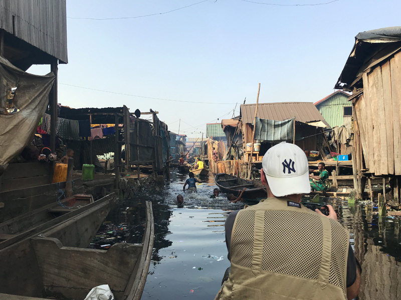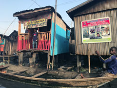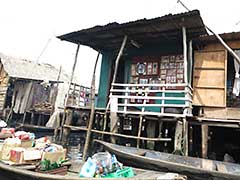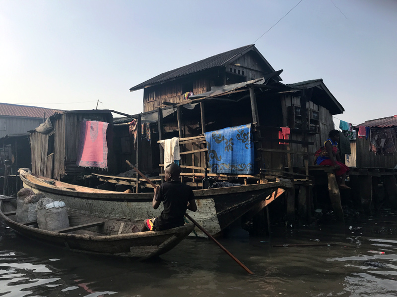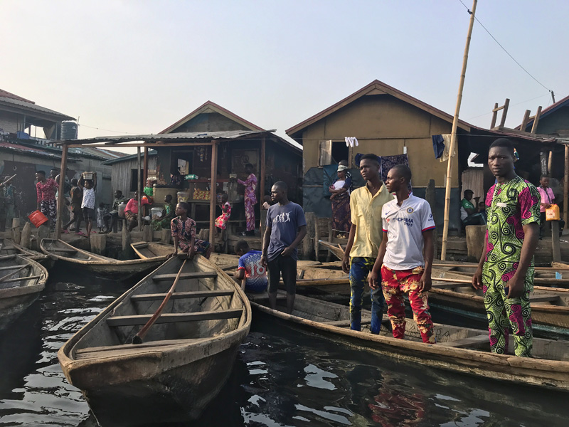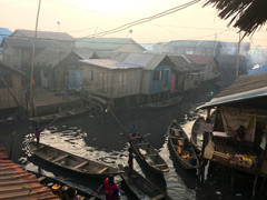 Makoko : situé en plein centre de Lagos, cœur économique du Nigéria, pays le plus peuplé du continent africain, Makoko a une filition directe avec Ganvié, le célèbre village lacustre du Bénin, voisin, dite la Venise de l’Afrique puisque fondé et peuplé par les Tofinus venus du Bénin. A la différence de leurs semblables au Bénin francophone, les jeunes Tofinus de Makoko ont perdu l’usage du français dans un Nigéria anglophone. La cité de Makoko ne possède ni véritables infrastructures ni organes de contrôles : l’eau courante, le réseau électrique et l’assainissement y sont absents. Sous la pression démographique, une première tentative de destruction du bidonville de Makoko a été décidé en juin 1990, sans aucune plan de relogement pour ses 30 000 habitants. Le bidonville renaît alors un peu plus loin, avec des habitats insalubres et précaires érigés sur la lagune. Les gouvernements qui se succèdent démolissent régulièrement cet espace, lequel se forme et se reforme inéluctablement dans les années 2000. La dernière destruction date de juillet 2012 : 30 000 habitants sont délogés de leur habitat qui est incendié et se retrouvent sans toit. Les heurts entre police et la population de Makoko à cette occasion provoquent un mort, ce qui met fin au projet de destruction du site. S’il est à noter que les médias du monde entier parlent de Makoko comme d’un bidonville, il faut aussi souligner que ses habitant récusent formellement cette appellation, et demandent que leur village ne soit plus associé à ce mot. (Nous le faisons ici pour de simples question de pertinence, sans intention d’offenser, dans l’intention de rendre cet article plus visible, la plupart des moteurs de recherches associant "Makoko" à "Bidonville au Nigéria" ).
