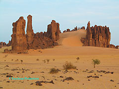 チャッドの世界遺産のエネディ山地:(エネディ山塊、エネディ高原、エネディ台地などとも表記されます)はチャド北東部(サハラ砂漠の一部)のエネディ=オウエスト(西エネディ州)とエネディ=エスト(東エネディ州)の地域に有る,長期間にわたる風,水と温度による侵食によって形成された砂岩の山塊です。この地域には、狩猟採集民(紀元前5,000〜4,000 cal)、牧畜民(紀元前4,000 calから)など多くの人々が住んでいた。また、エネディ地域は、経済的、環境的、文化的に大きな役割を果たした家畜を中心に描いたロックアートのコレクションが多いことでも知られている。このアートは約7,000年前にさかのぼります。現在、エネディには、主にイスラム教を信仰する2つの半遊牧民が、雨季には定住し、乾季にはこの地域を通過しています。彼らはラクダ、ロバ、羊、ヤギの群れを頼りに生活している。